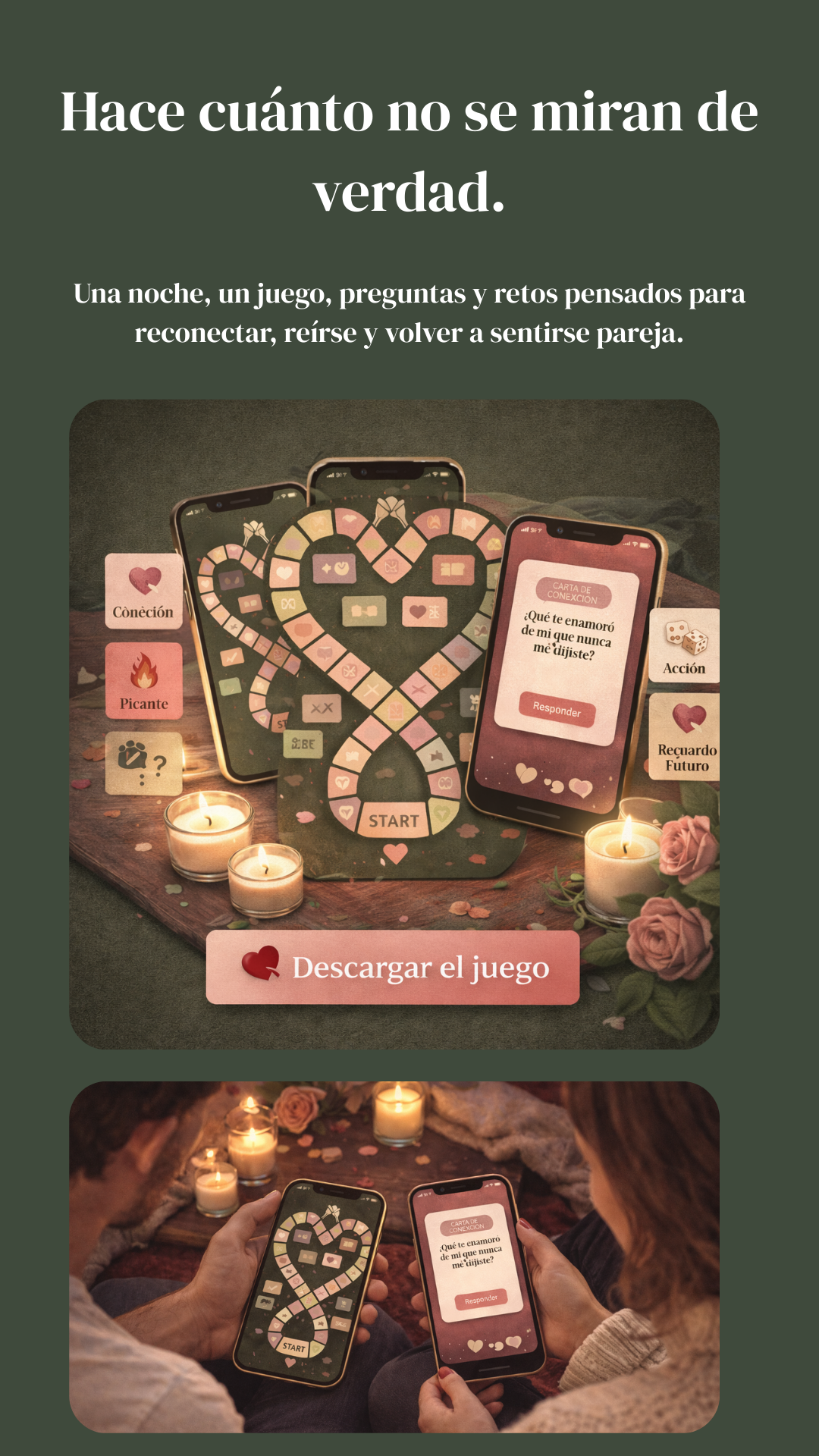 No. Está pensado para San Valentín, pero lo pueden jugar cualquier noche que quieran reconectar.
